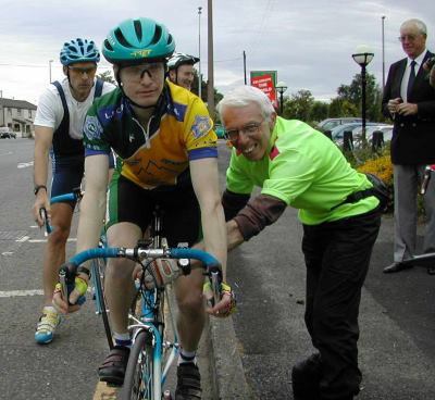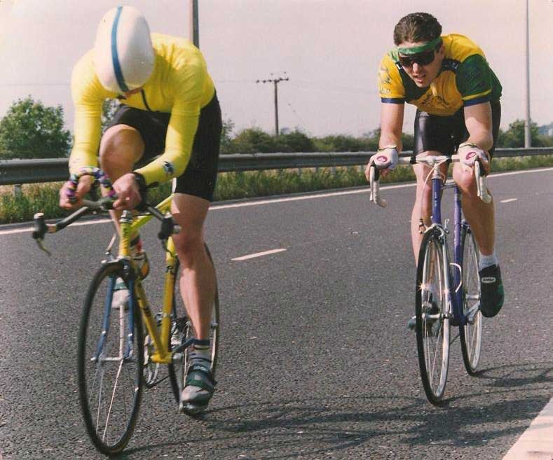 I edited a few of the club newsletters and rode the York 100mile ride, organised by Cycling Weekly for National Bike Week. Because I had a road racing background, I got on with Paul & John Radford particularly well; eventually Paul persuaded me to ride a time trial with him (see photo), where I took the mother of all kickings from him – he didn’t even seem out of breath, such was the quality of Mr Radford!