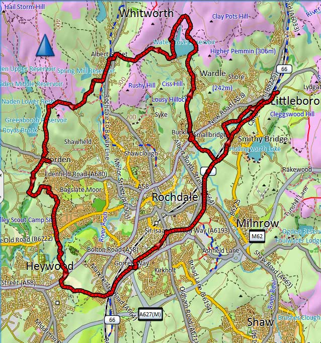 We can start the loop from either Rooley Moor or from Wardle. Riding clockwise from Rooley Moor gets the biggest slog up onto the tops over with whilst the legs are fresh.